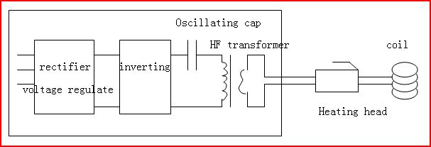 SPS machines adopt series oscillating circuit, inverting high frequency power is output through transformer and oscillating cap to the heating head, and then output to coil for heating.