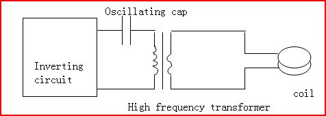 In SP-15 and SP-25 series machines, series oscillating circuit is applied as circuit below, through high frequency transformer, low voltage and high current power is output to go through the induction coil. SP-15 and SP-25 series machines are the first models developed in our company, SP-15 uses MOSFET components and SP-25 used IGBT components, both use our first generation inverting control technology, the machines are featured with simple structure, high reliability and low price, and they are easy to use and to repair, and are now the most widely used machines both in China and abroad.