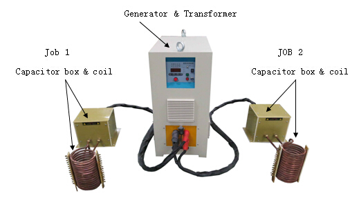 In above application, two job is distant 4 meters away and two jobs need to be heated at the same time with same step.   Compared with the old heating plan of two coils in series with4mwater cooled cable, this project is energy saving and machine cost saving too.