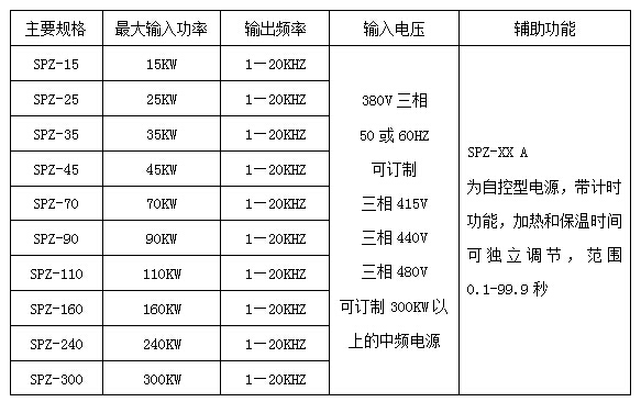 雙平可提供15—300KW的中頻電源,可訂制400—1000KW的中頻電源;常規(guī)庫存電源的規(guī)格和參數(shù)如下表: